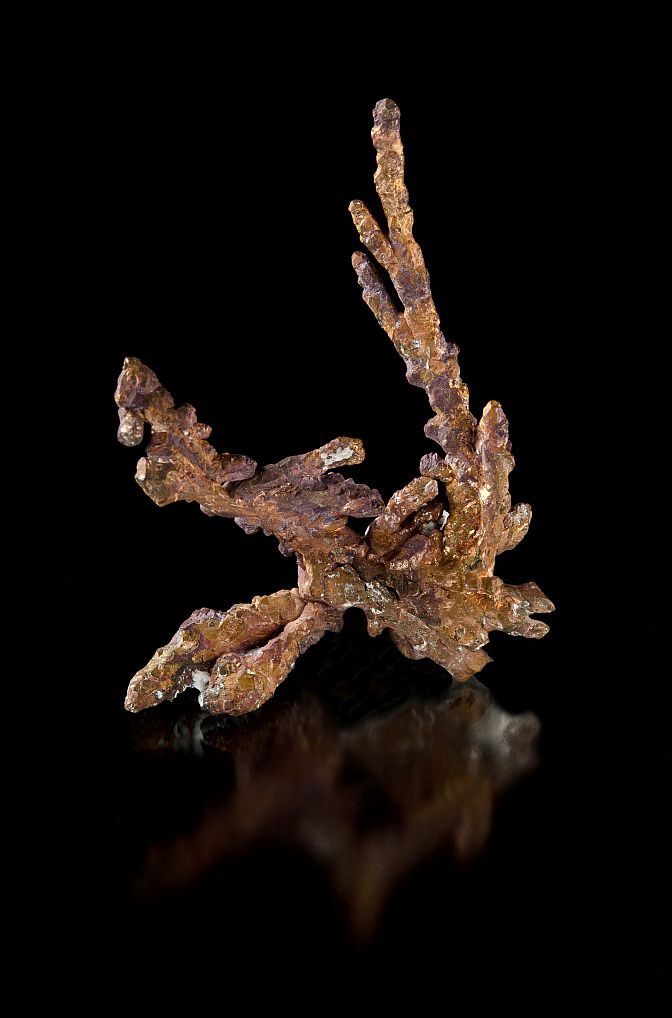This is a very nice specimen of arborescent copper from the Upper Peninsula of Michigan. The color ranges from a muted purple to a vibrant and lustrous brass. The delicate and crudely crystalline form gives this piece nice visual appeal.