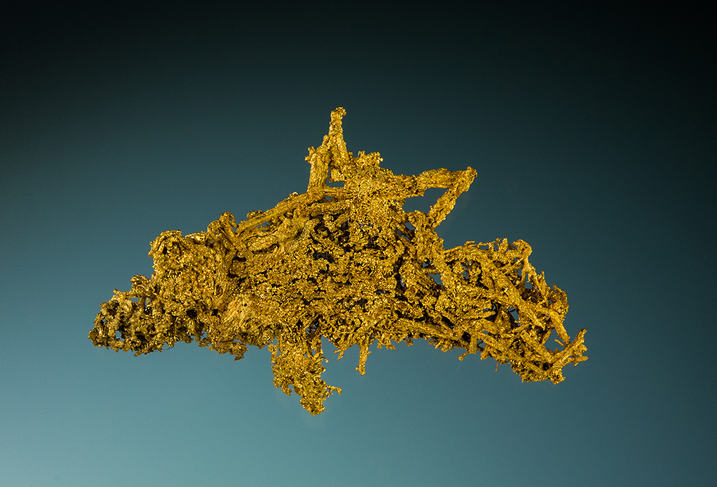 Farncomb Hill in Breckenridge, Colorado is known around the world for its fine specimens of leaf and wire gold. Notable mines in the area include the Gold Leaf and the Wire Patch. The sheer beauty of this “Breckenridge Gold” led many miners to save the better specimens from the smelters, preserving them in their natural state. Like this specimen, the majority of gold specimens from Farncomb hill are very tabular- long in two dimensions while very thin in the third dimension. This results from the way the gold was formed, within very thin but elongated veins which formed between bedding contacts within shale units on the summit and slopes of the hill.