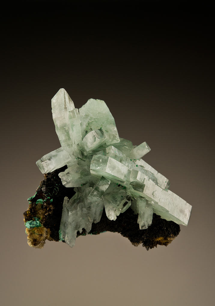 A lovely cluster of green (malachite included?) barite crystals on a nicely contrasting matrix.