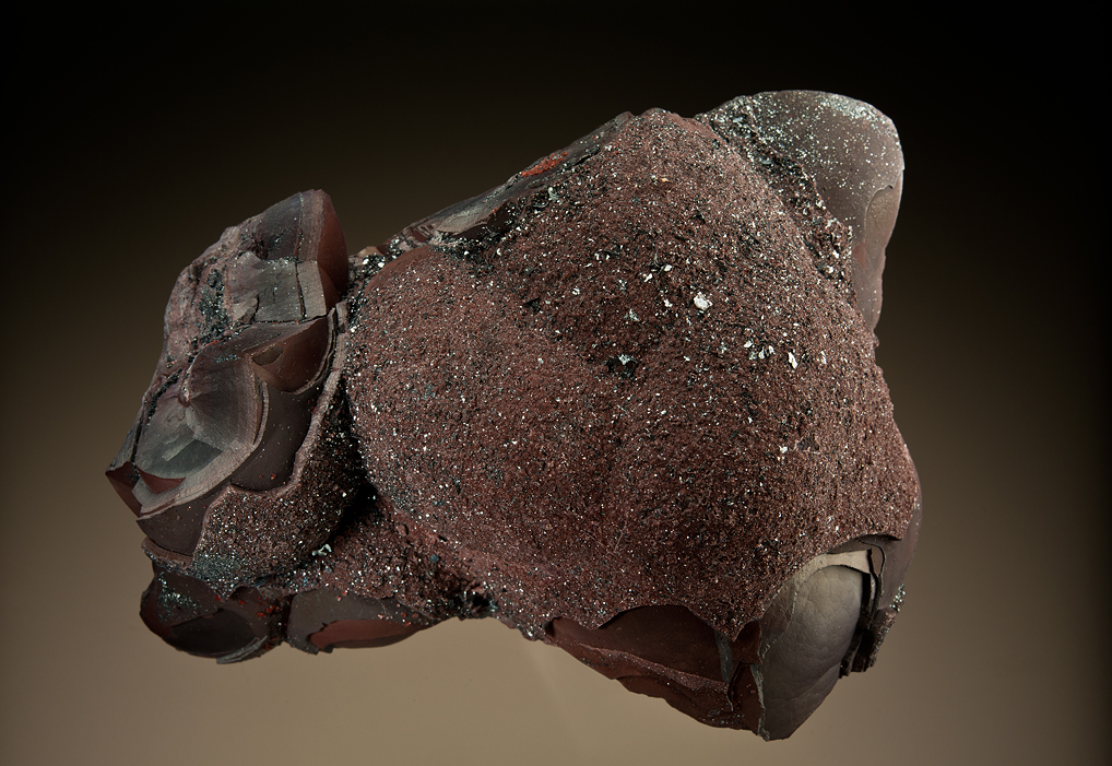 An interesting sculptural mound of red-stained botryoidal hematite covered with a final layer of sparkling hematite crystals.