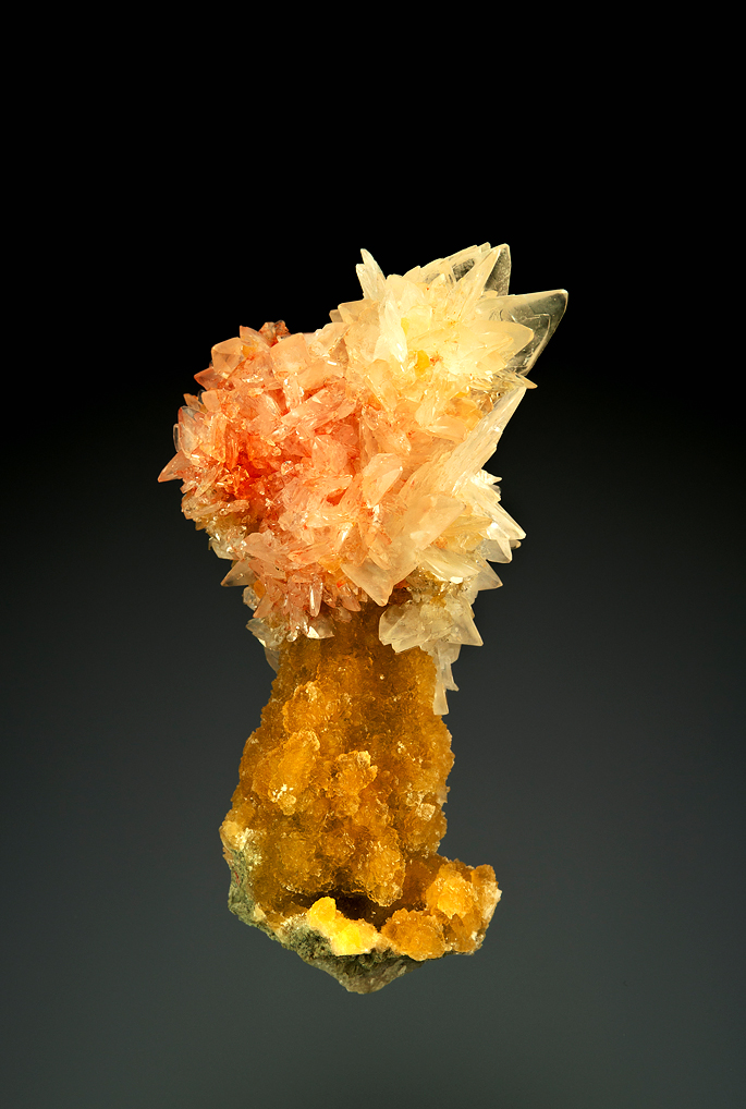 COLEMANITE with REALGAR on CALCITE