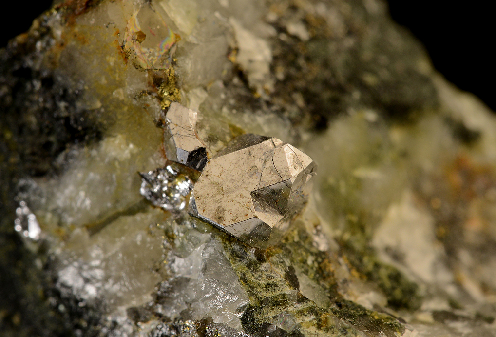 During bulk sampling operations in 2011 a world class discovery of exceptional sperrylite crystals was made at the Broken Hammer prospect near Sudbury, Ontario. The crystals were found in a mineralized breccia containing chalcopyrite, millerite, epidote, and quartz that comprise most of the matrix for the sperrylite crystals. Many loose crystals were found, but we concentrated on purchasing the best matrix specimens we could get our hands on, and finally, after two years, export permits were granted for the best pieces and we were confident that we had the best lot that was released from Canada. The biggest problem with the specimens is that the breccia commonly fractured the larger crystals. Also, several specimens are repaired because as the crystals were exposed from the encasing matrix, some had a tendency to pop off and needed to be reattached to the matrix.