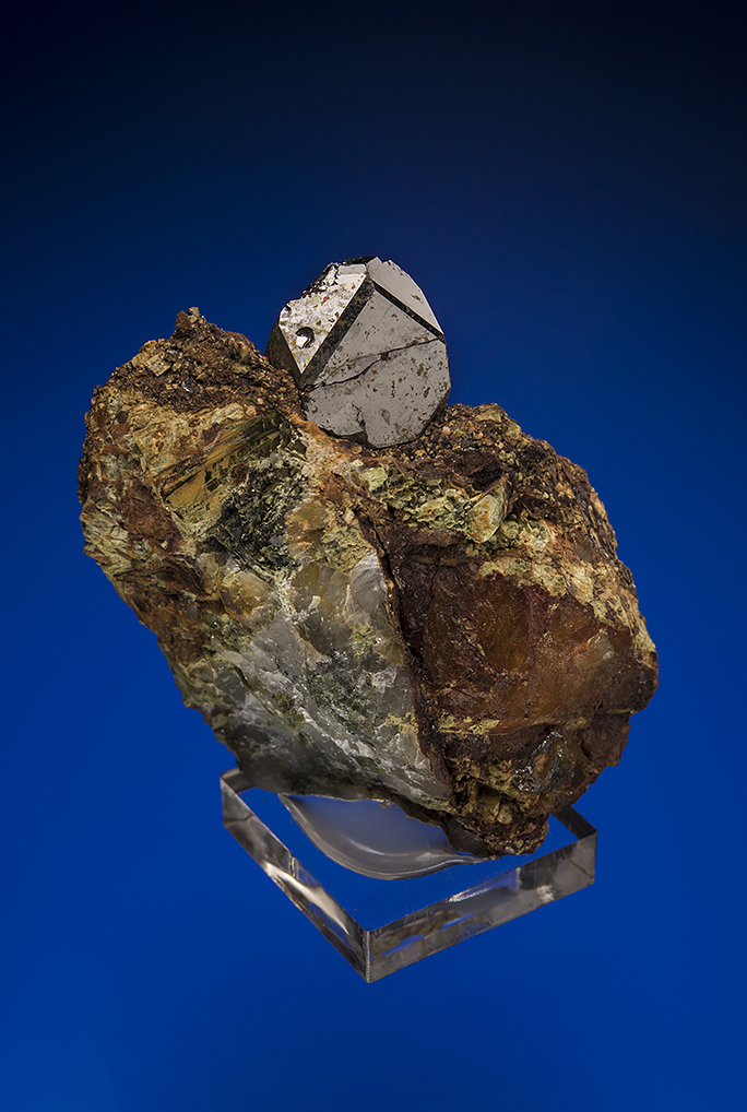 This is one of the top pieces in the find. The single 15 x 13 mm crystal is perched on an iron-stained breccia matrix. Unfortunately, the crystal has been repaired along the obvious crack and has been re-attached to the matrix.