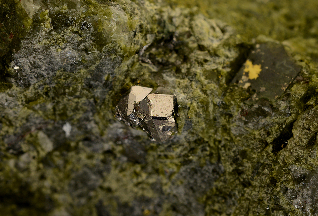 During bulk sampling operations in 2011 a world class discovery of exceptional sperrylite crystals was made at the Broken Hammer prospect near Sudbury, Ontario. The crystals were found in a mineralized breccia containing chalcopyrite, millerite, epidote, and quartz that comprise most of the matrix for the sperrylite crystals. Many loose crystals were found, but we concentrated on purchasing the best matrix specimens we could get our hands on, and finally, after two years, export permits were granted for the best pieces and we were confident that we had the best lot that was released from Canada. The biggest problem with the specimens is that the breccia commonly fractured the larger crystals. Also, several specimens are repaired because as the crystals were exposed from the encasing matrix, some had a tendency to pop off and needed to be reattached to the matrix.