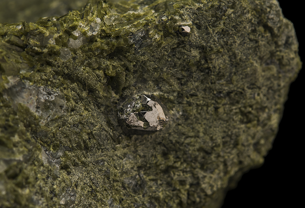 A beautiful 4 mm crystal on an epidote and quartz matrix. The crystal fell off the matrix during preparation and has been re-attached.