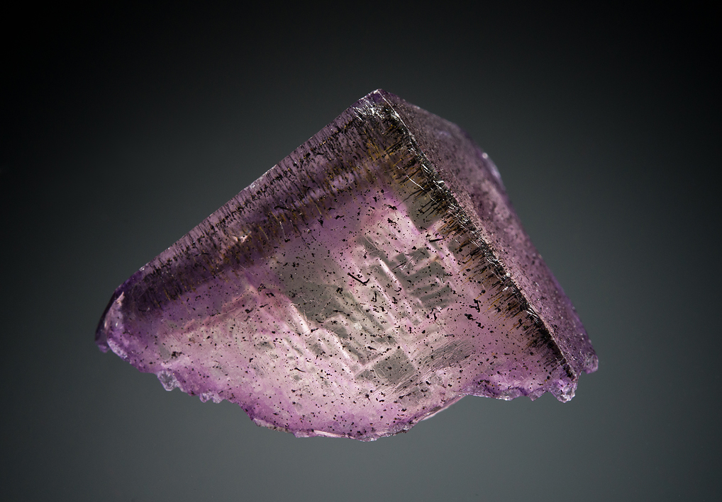 Another fascinating Elmwood piece from the Colwell collection. This absolutely gem clear sample is essentially a floater crystal corner. The cube faces are completely unaltered, but the corner has clearly been etched away from a larger cube. On the reverse you can see that a remnant of the cube surface remained while the underlying fluorite was etched away.