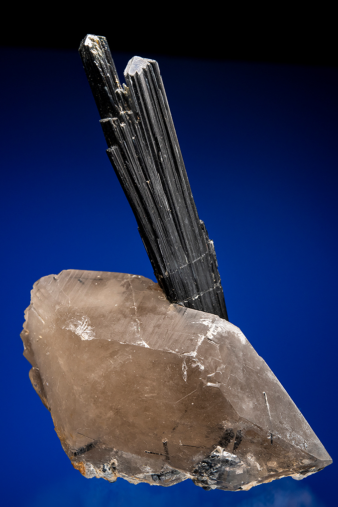 Tourmaline on QUARTZ var. Smoky (repaired)