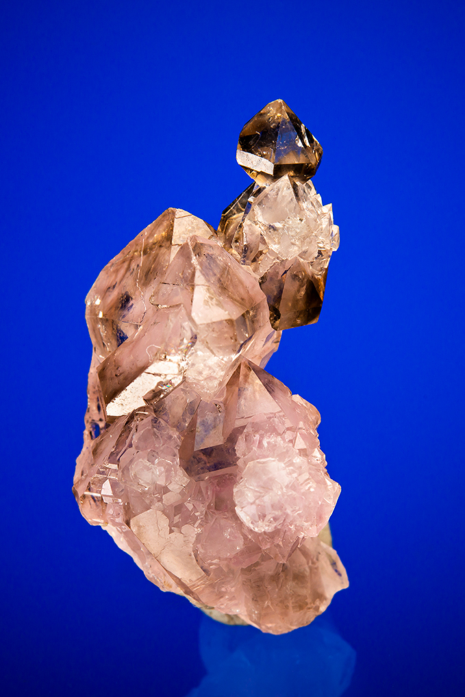 QUARTZ var. Smoky on QUARTZ var. Rose QUARTZ