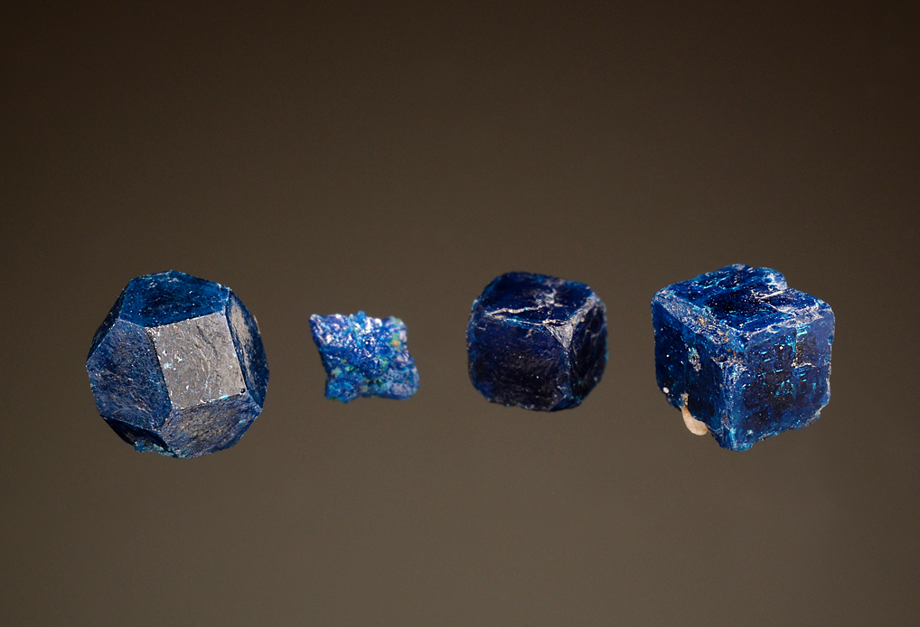 I have always been a bit intrigued by the different forms of the blue copper/silver chlorides from Boleo, so I decided to put together suites when I could. It takes some time to find each species in a relative size and quality, but I’ve managed to put together a couple nice suites. The suite contains a cumengeite star, a pseudoboleite on boleite, a sharp cube of boleite, and a cube-octahedron of boleite.
