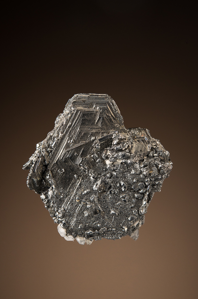 This is a perfect floater pseudo-hexagonal blade of polybasite with some attached acanthite and quartz. It is not as bright as some, but the perfection of the crystal makes up for the luster.