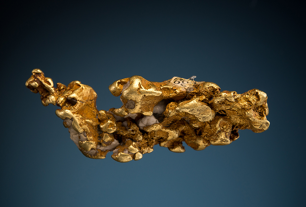 This is a nice water-worn nugget with some attached quartz from the Lena River in Russia. 0.98 ozt [includes matrix]