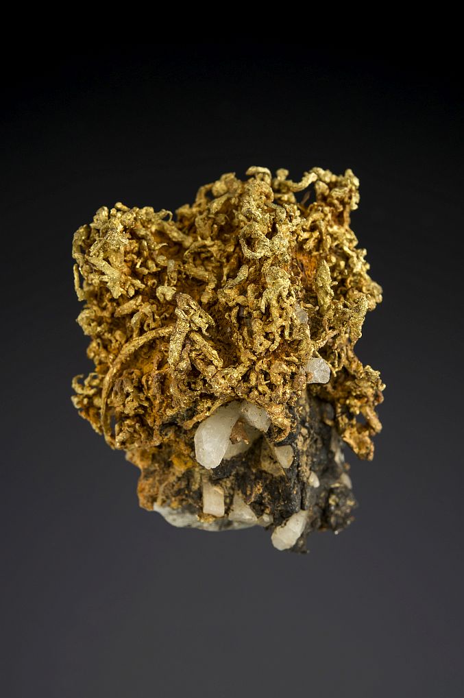 This specimen is one piece from a spectacular find of native gold wires from the dumps of the Belshazzar Mine in Idaho. This historic mine was researched and prospected by collectors with metal detectors, and resulted in a once in a lifetime discovery. 0.650 ozt [includes matrix]