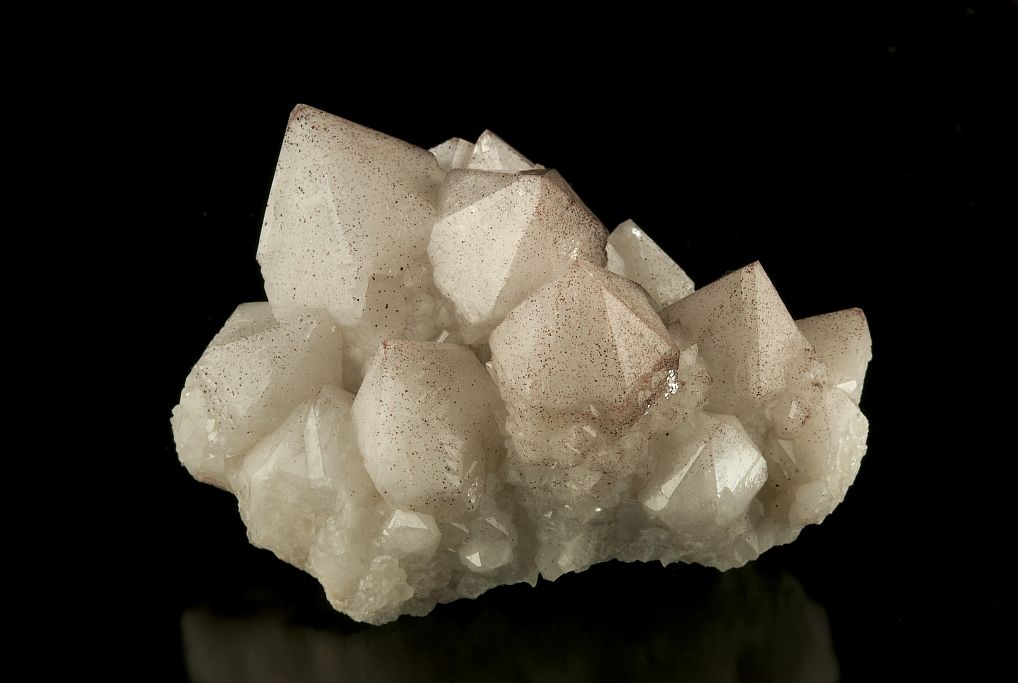 This is a classic Four Peaks quartz, a fine cluster of sharp gleaming white crystals with a light dusting of hematite.