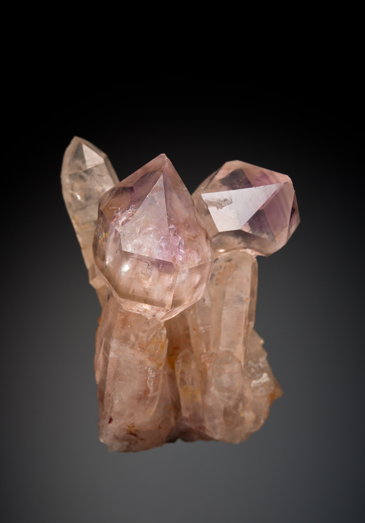 There were lots of Fat Jack mine quartz clusters in the Michel collection, but none with better luster and clarity than this one collected by Ray Grant. The scepter heads are pale purple topping the long grayish scepter stems.