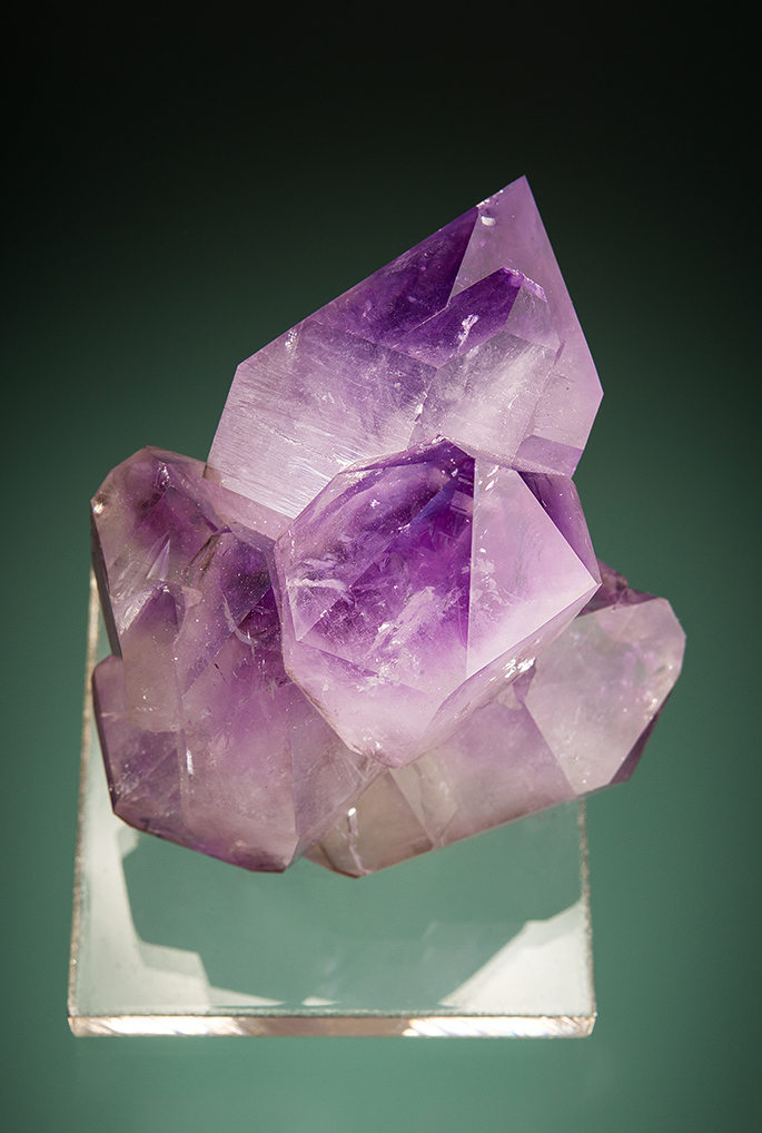 This is one of the best pieces in the lot. It’s a great cluster of top quality gemmy lustrous purple crystals, and it’s a floater to boot. All the crystals are doubly terminated.