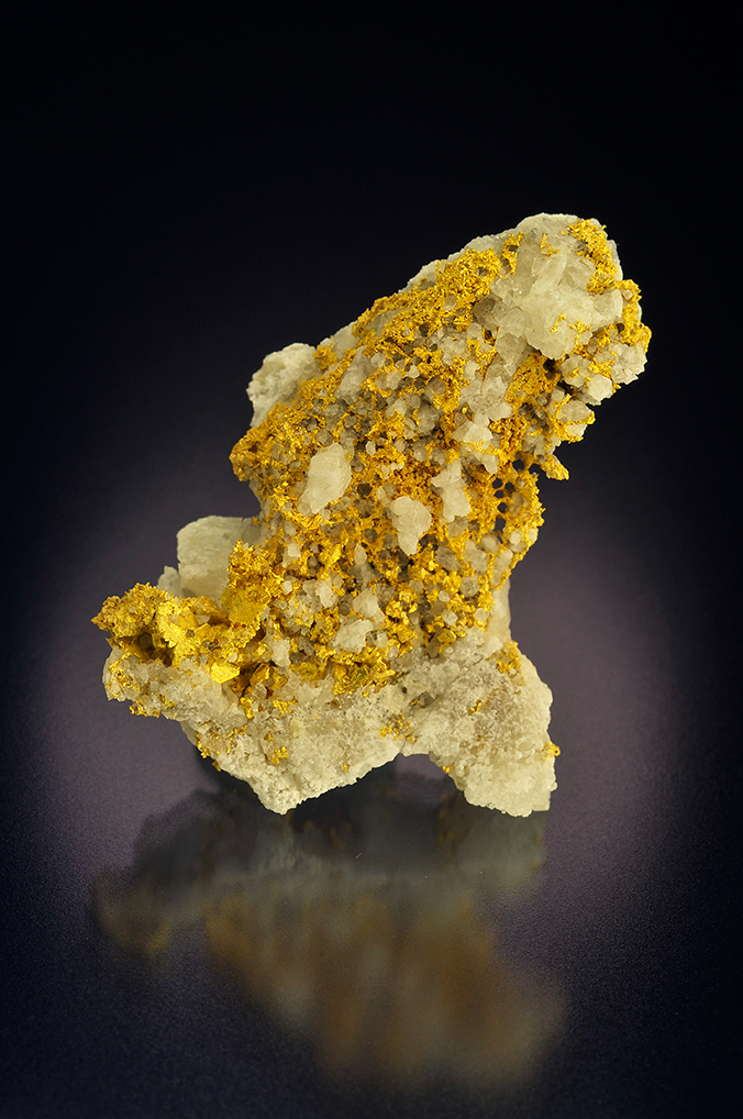 Although far more famous for silver, lead, and zinc production, Leadville, Colorado was also a major gold producer in the late 1800's and early 1900's. Notable gold mines in the area include John Campion and JJ Brown's Ibex Group (including the Little Jonny) on Breece Hill and the Printer Boy Mine in California Gulch. Collectors have been scouring the Leadville mine dumps for generations since in search of gold missed by the original miners, but potential prospectors should be aware that nearly all the gold bearing mine dumps are now posted and rules against trespassing and collecting are strictly enforced. Gold specimens from Leadville exhibit many different habits including equant crystals, crystalline leaves, ribbons and wires, and "sponge" gold. Typical "sponge" gold from Leadville often gives the appearance of crystallized gold, but the reflections that look like crystal faces are actually casts from dissolved quartz crystals.