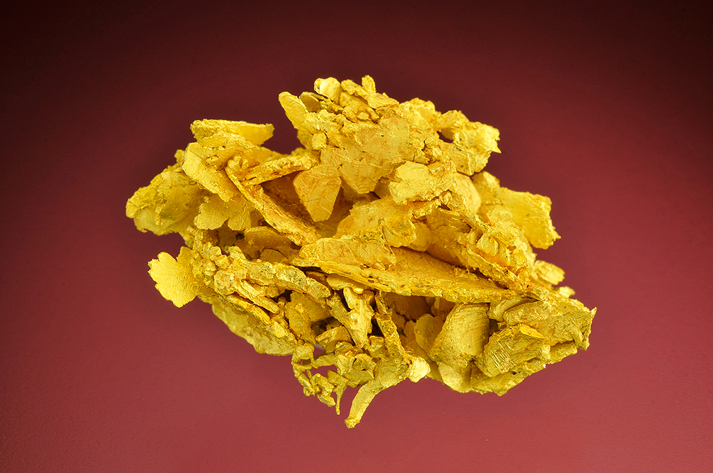 Although far more famous for silver, lead, and zinc production, Leadville, Colorado was also a major gold producer in the late 1800's and early 1900's. Notable gold mines in the area include John Campion and JJ Brown's Ibex Group (including the Little Jonny) on Breece Hill and the Printer Boy Mine in California Gulch. Collectors have been scouring the Leadville mine dumps for generations since in search of gold missed by the original miners, but potential prospectors should be aware that nearly all the gold bearing mine dumps are now posted and rules against trespassing and collecting are strictly enforced. Gold specimens from Leadville exhibit many different habits including equant crystals, crystalline leaves, ribbons and wires, and "sponge" gold. Typical "sponge" gold from Leadville often gives the appearance of crystallized gold, but the reflections that look like crystal faces are actually casts from dissolved quartz crystals.