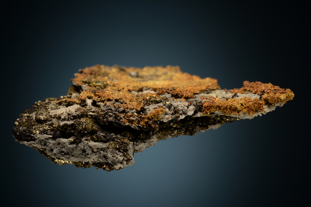 Although far more famous for silver, lead, and zinc production, Leadville, Colorado was also a major gold producer in the late 1800's and early 1900's. Notable gold mines in the area include John Campion and JJ Brown's Ibex Group (including the Little Jonny) on Breece Hill and the Printer Boy Mine in California Gulch. Collectors have been scouring the Leadville mine dumps for generations since in search of gold missed by the original miners, but potential prospectors should be aware that nearly all the gold bearing mine dumps are now posted and rules against trespassing and collecting are strictly enforced. Gold specimens from Leadville exhibit many different habits including equant crystals, crystalline leaves, ribbons and wires, and "sponge" gold. Typical "sponge" gold from Leadville often gives the appearance of crystallized gold, but the reflections that look like crystal faces are actually casts from dissolved quartz crystals.
