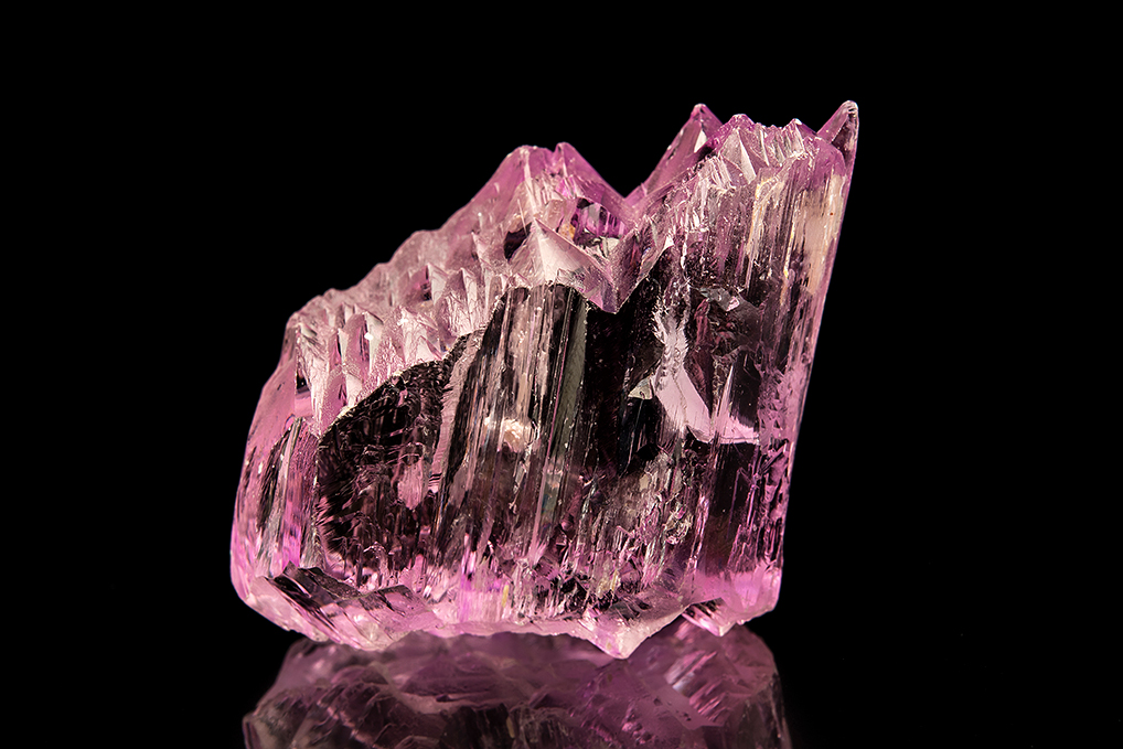 This is a typical but top quality floater crystal of kunzite. The crystal is lustrous and gemmy with the typical etched termination.