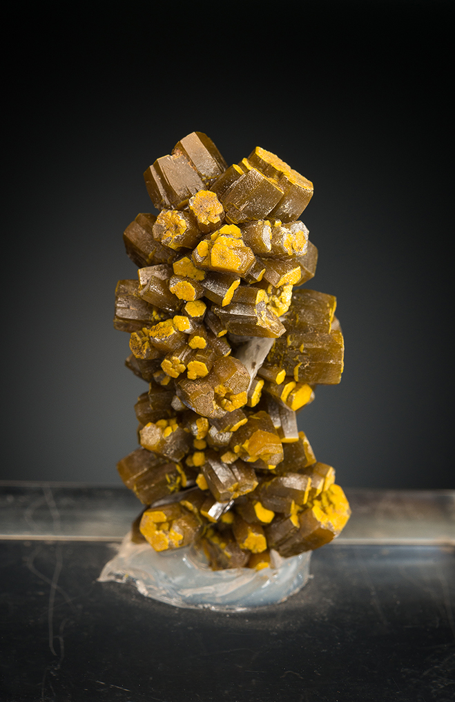 Les Farges is certainly one of the top pyromorphite locations in the world, and it has produced many different styles of pyromorphite. This excellent miniature is a stalactite of olive green barrels with yellow ends, a quite distinctive and desirable habit.