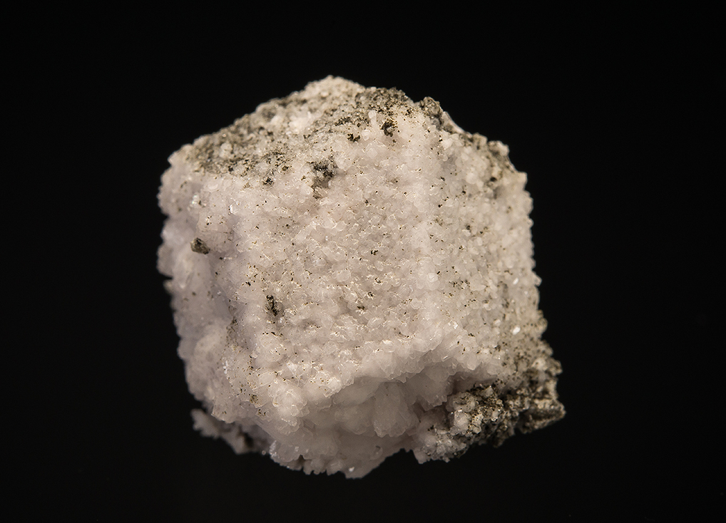 The label states that this large sodalite dodecahedron is coated with analcime, but after looking under magnification I’m more inclined to believe that the coating is tiny crystals of albite.