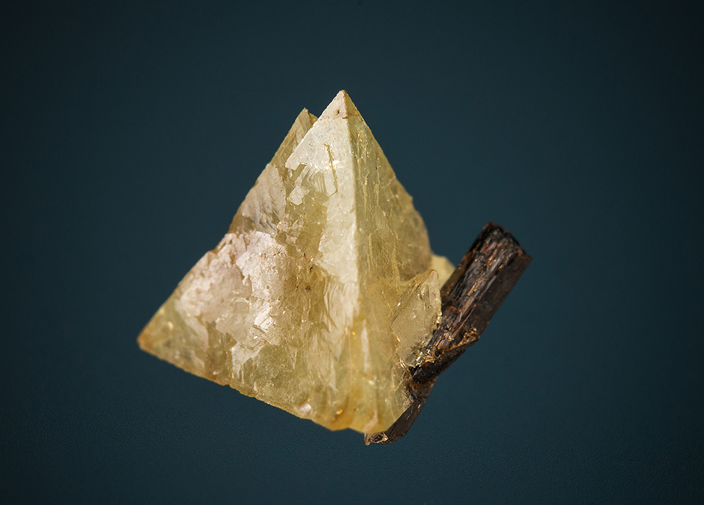 For some reason I really like the helvite group minerals, especially the zinc bearing genthelvite. This single sharp lustrous tetrahedron from Mont St. Hilaire has wonderful luster and color with some attached aegirine in case there was any doubt as to the locality.