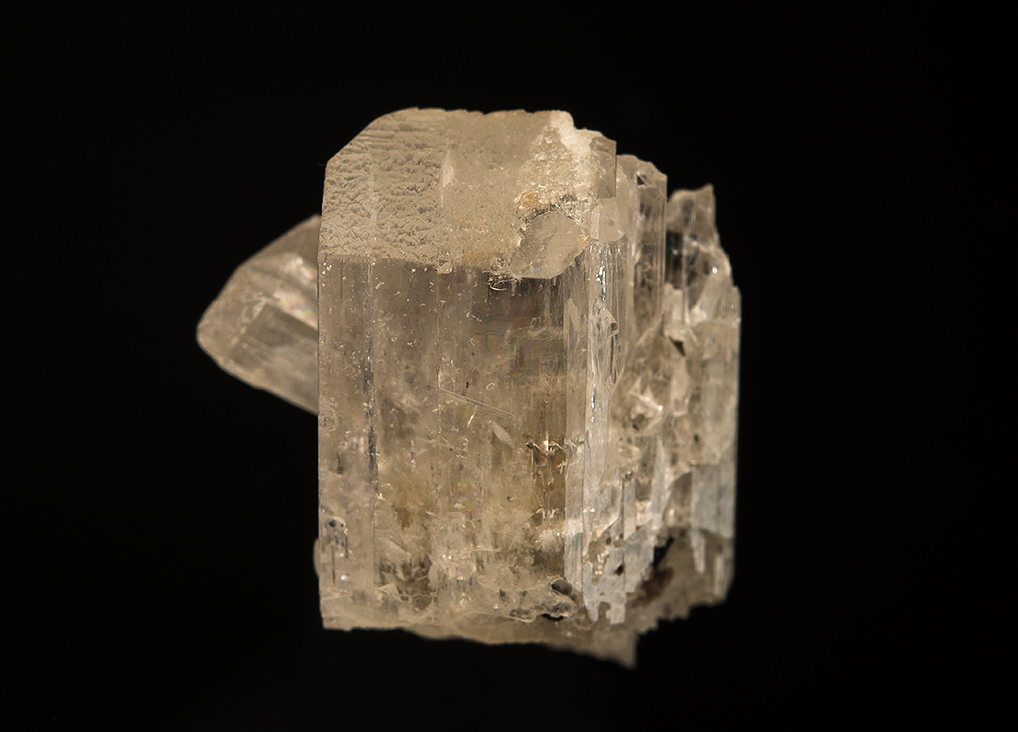 There is lots of fibrous pectolite in the world, but sharp crystals like this one don’t appear from too many places. This cluster of two gemmy crystals is white to colorless with great luster, and once was part of the Bill Pinch collection that was purchased by the National Museum of Canada in Ottawa. Frank and Wendy Melanson acquired the specimen from the collection in 1990.