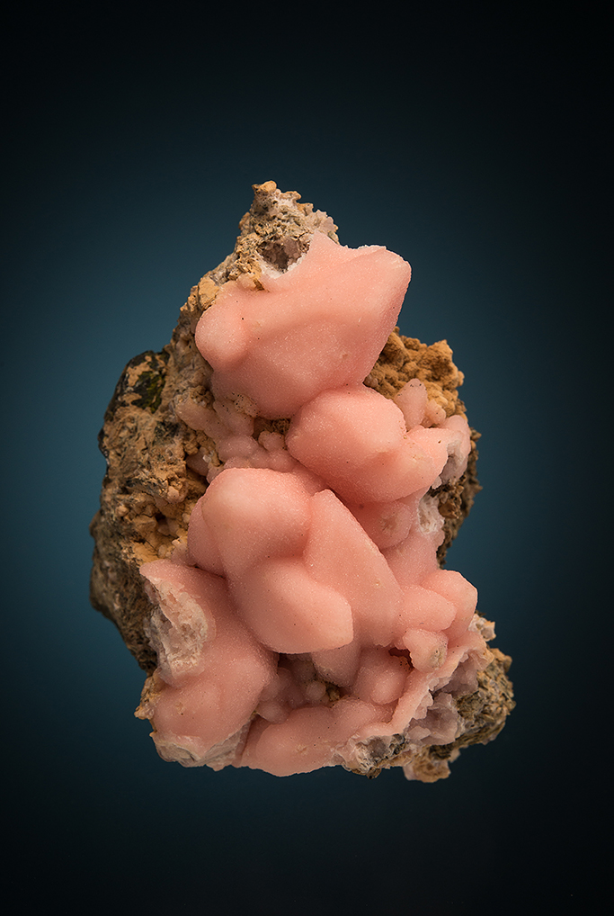 Rhodochrosite from Taxco is quite varied and unique. This one is a cluster of pearly rhodochrosite after calcite scalenohedrons. Broken crystals on the edge of the specimen show the hollow nature of the pseudomorphs.